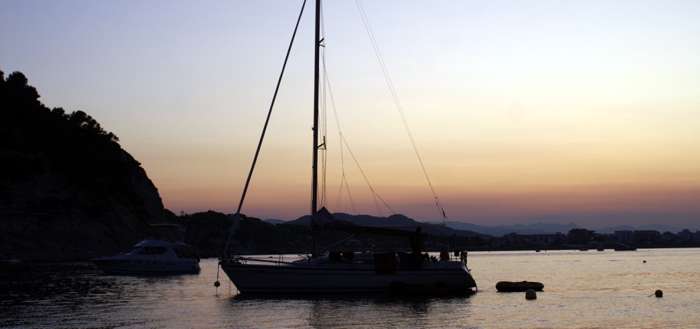 llegado a la Cala del Portichol, para fondear al abrigo de la