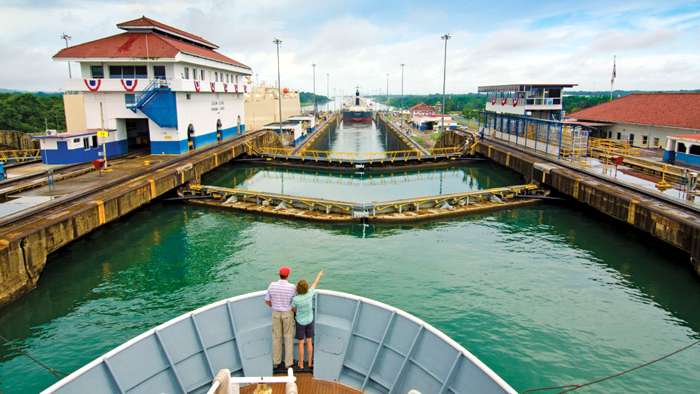 finalmente, a través de las esclusas de Miraflores, alcanzará el