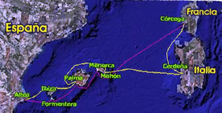Cerdeña, para volver de nuevo a las Baleares y al puerto base.